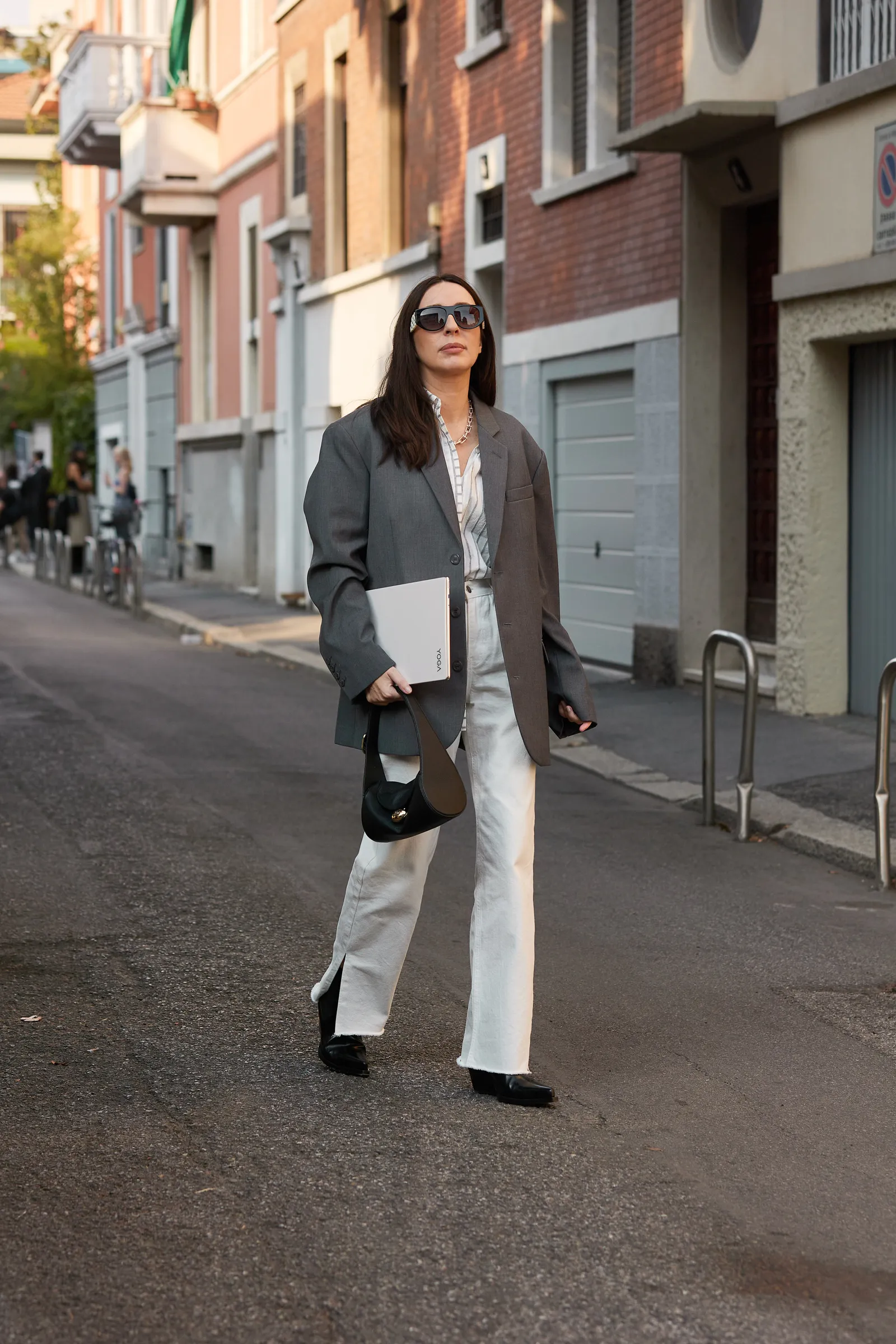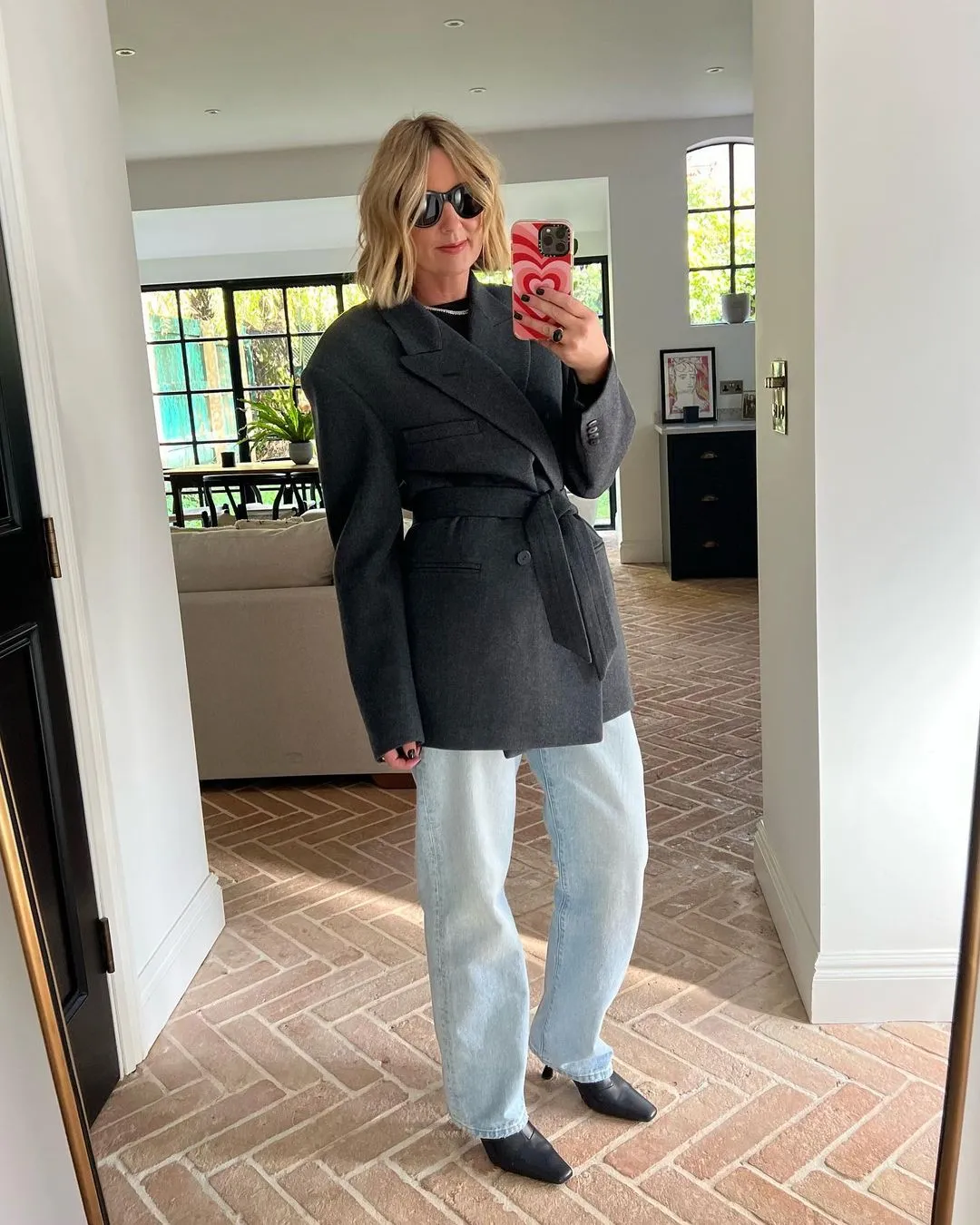 BLAZER RỘNG RÃIMột chiếc blazer xám phom rộng, được thắt đai nhấn eo gọn gàng, sẽ kết hợp ăn ý với quần denim đen dáng ôm và một chiếc thắt lưng mảnh — lựa chọn thanh lịch, chỉn chu nhưng vẫn hiện đại cho môi trường công sở.