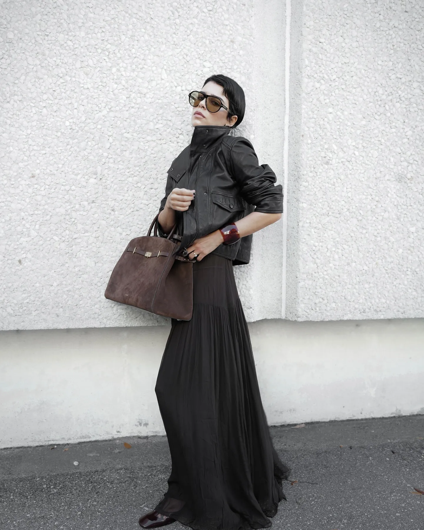 ÁO KHÓA KÉO NỬA NĂNG ĐỘNGHãy kết hợp một chiếc áo khoác khóa kéo phong cách thể thao cùng chân váy maxi đen mềm mại, tạo nên sự tương phản thú vị giữa năng động và nữ tính. Thêm những phụ kiện tối giản, sắc sảo như boots cao đến gối và túi đeo chéo sẽ giúp tổng thể thêm cân bằng, đồng thời làm nổi bật chiếc áo khoác như điểm nhấn chính của set đồ.